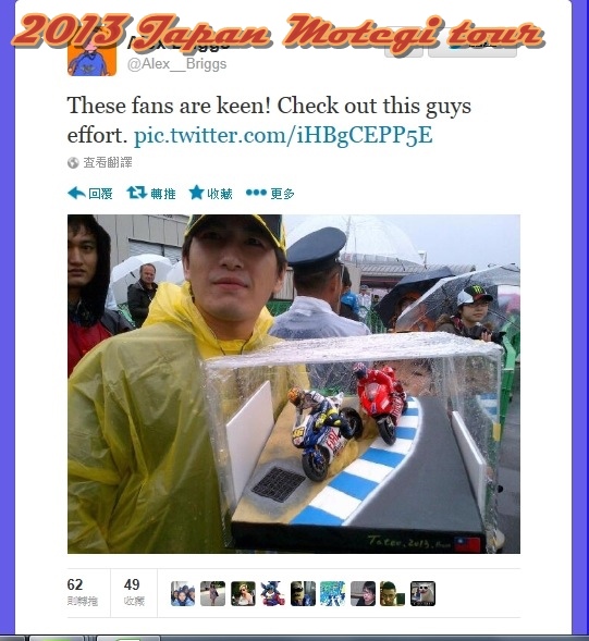 舉的牌子寫"明年MOTO GP 期待再次相會"